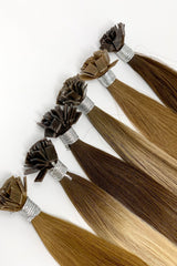 Keratin extensions are small and can be cut and customized to your clients hair density. The keratin bond is made with highest grade European protein. Length of wear on each set will vary on your clients hair type.