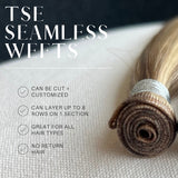 Seamless hand-tied wefts can be cut and customized without the hair falling apart. They are durable and long-lasting. The weft will last up to a year with proper after-care.