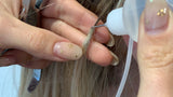 KERATIN REMOVAL DIRECTIONS: Dab a small amount of the remover on the keratin bond and let it set for a few seconds. Use the Hair Extension Tool to squeeze the bond until it slips off the hair.  ***Add more solution if it’s not gently releasing.